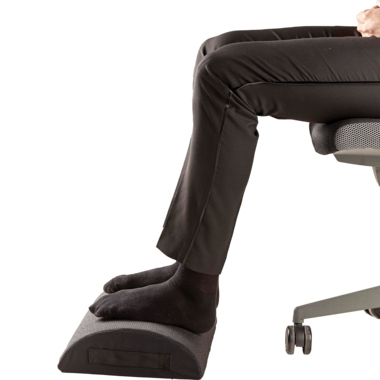 Entwickelt, um Rücken- und Beinbeschwerden zu lindern, indem es die Füße unterstützt und eine korrekte ergonomische Haltung fördert. Reduziert die Muskelermüdung, indem der Druck an der Rückseite der Oberschenkel verringert wird. Schaukeloption zur Förderung von Bewegung und Durchblutung. Integrierter Tragegriff für einfachen Transport an jeden Arbeitsort. Schaumstoff besteht zu 93 % aus Pre-Consumer recyceltem Material. Der Stoffbezug besteht zu 100 % aus Post-Consumer recyceltem Polyester.